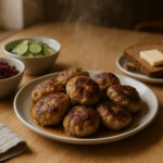 - Form små kødboller ved at tage en spiseskefuld af kødblandingen og rulle den mellem dine hænder. Gentag indtil al kødblandingen er brugt.